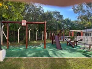 Condomínio tem salão de festa, espaços gourmet com churrasqueira, piscina adulto e infantil, playground e área fitness.